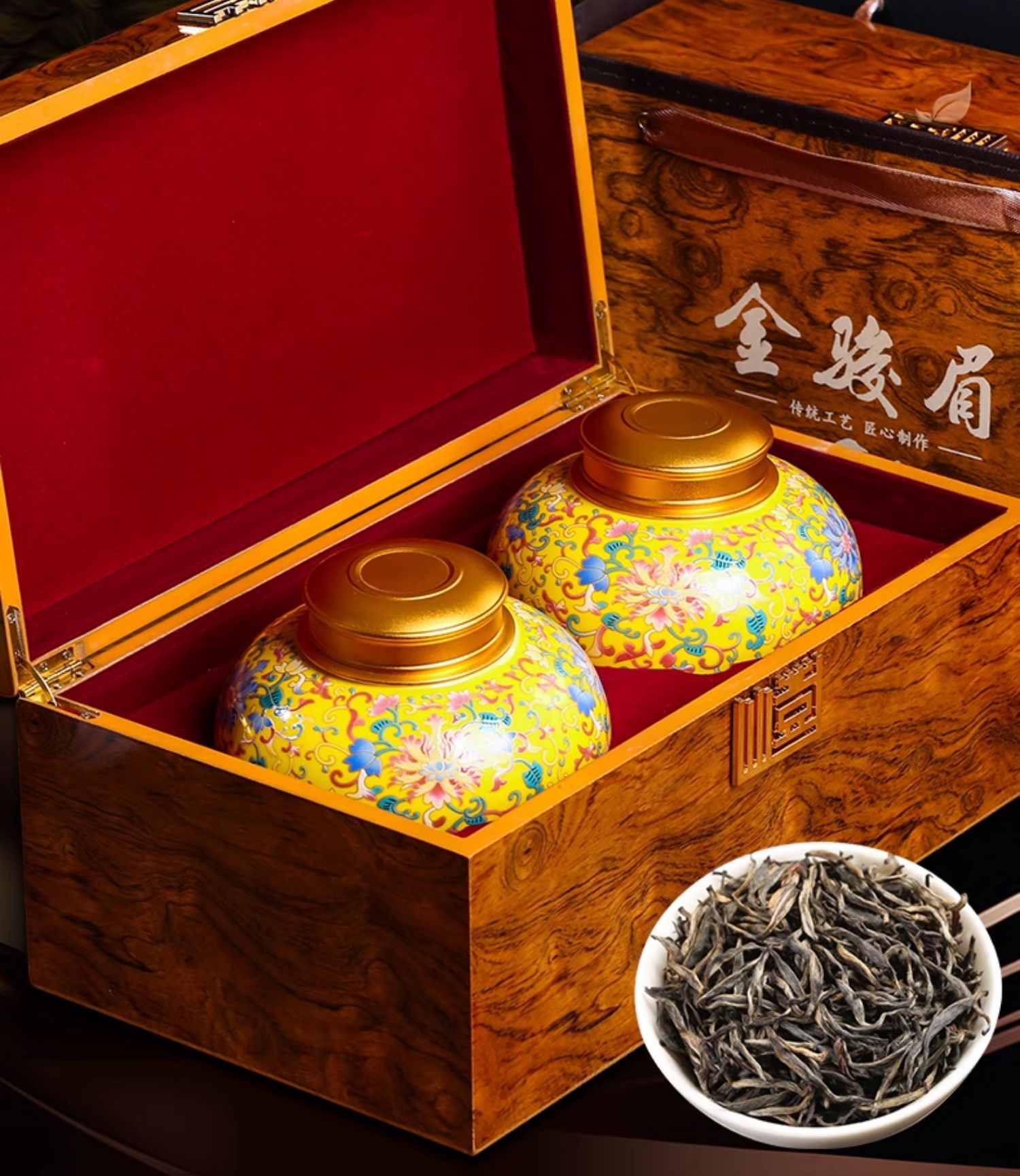 金骏眉红茶茶叶特级浓香型武夷山桐木关金俊眉陶瓷实木礼盒装
