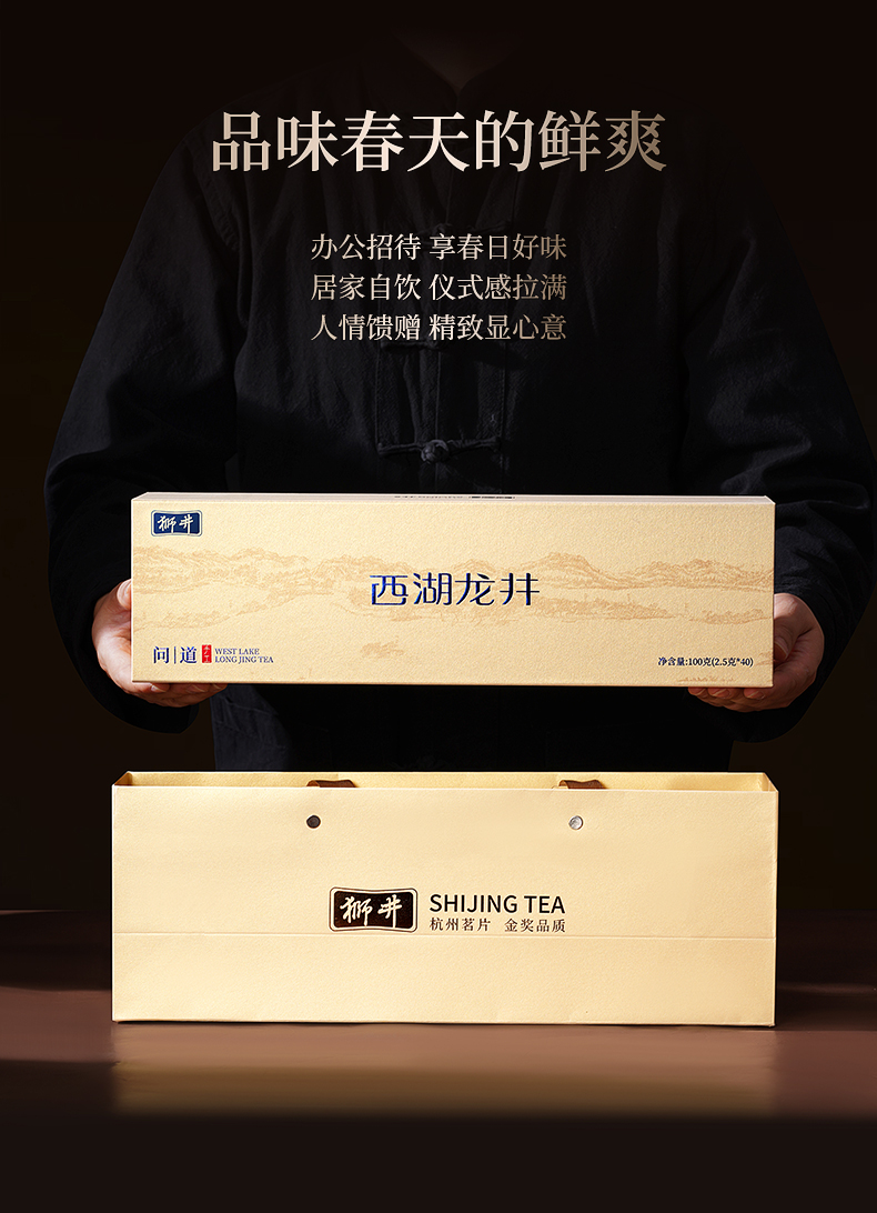 狮井西湖龙井明前精品2025新茶绿茶叶礼盒装100g送长辈